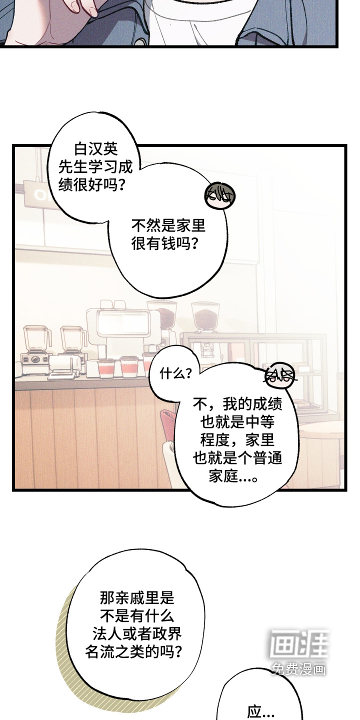“我怎么会在一个和我不怎么亲近的同学家里表演脱衣秀呢?” 作为一个普通的韩国男孩no namer白翰英,在大学里遇到了名叫柳清玄的Namer。 柳清玄对和自己身上的名字同名的白翰英产生了极大的兴趣,开始跟踪他。 在柳清玄的纠缠下,白翰英为了证明自己是no namer,在柳清玄面脱衣自证,但… “如果能回到过去,我绝对不会再犯傻,做出这种提议。”