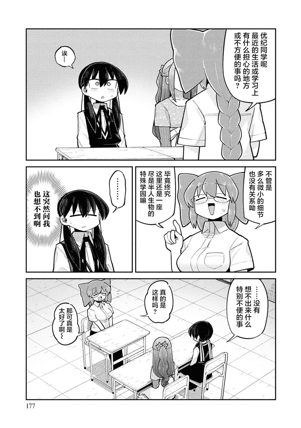 以为又要孤身一人的时候,同桌突然过来搭讪了。 转校生的岩月优纪。 今天是第一天来到新学校。 总感觉心理创伤会复发的时候。 同班里十分活跃的女生「小猫」与 盒子头的「秋空盒」她们,居然对优纪充满兴趣? 优纪最终会与大家处好关系吗!?