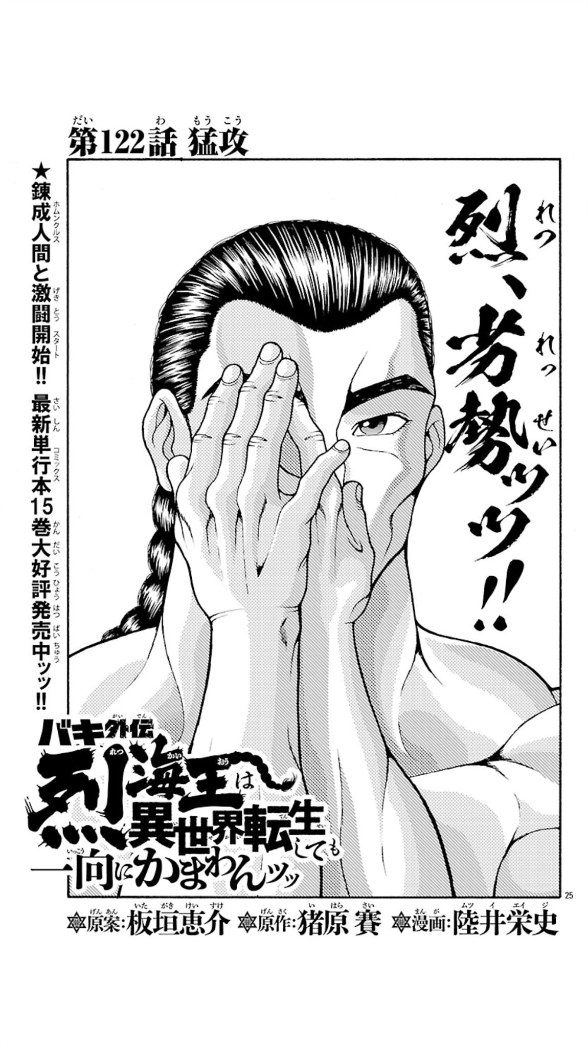 刃牙外传 烈海王对于转生异世界一向是无所谓的漫画 ,「刃牙」系列非公认分支作品连载始!! 「刃牙道」第八卷中,烈海王与剑豪宫本武藏战斗并绝命。但是他换了本杂志竟然苏醒了!! 坂垣惠介,「目前」不承认!即使这样也要连载!烈士烈海王在异世界大身手! 觉醒吧…烈海王…