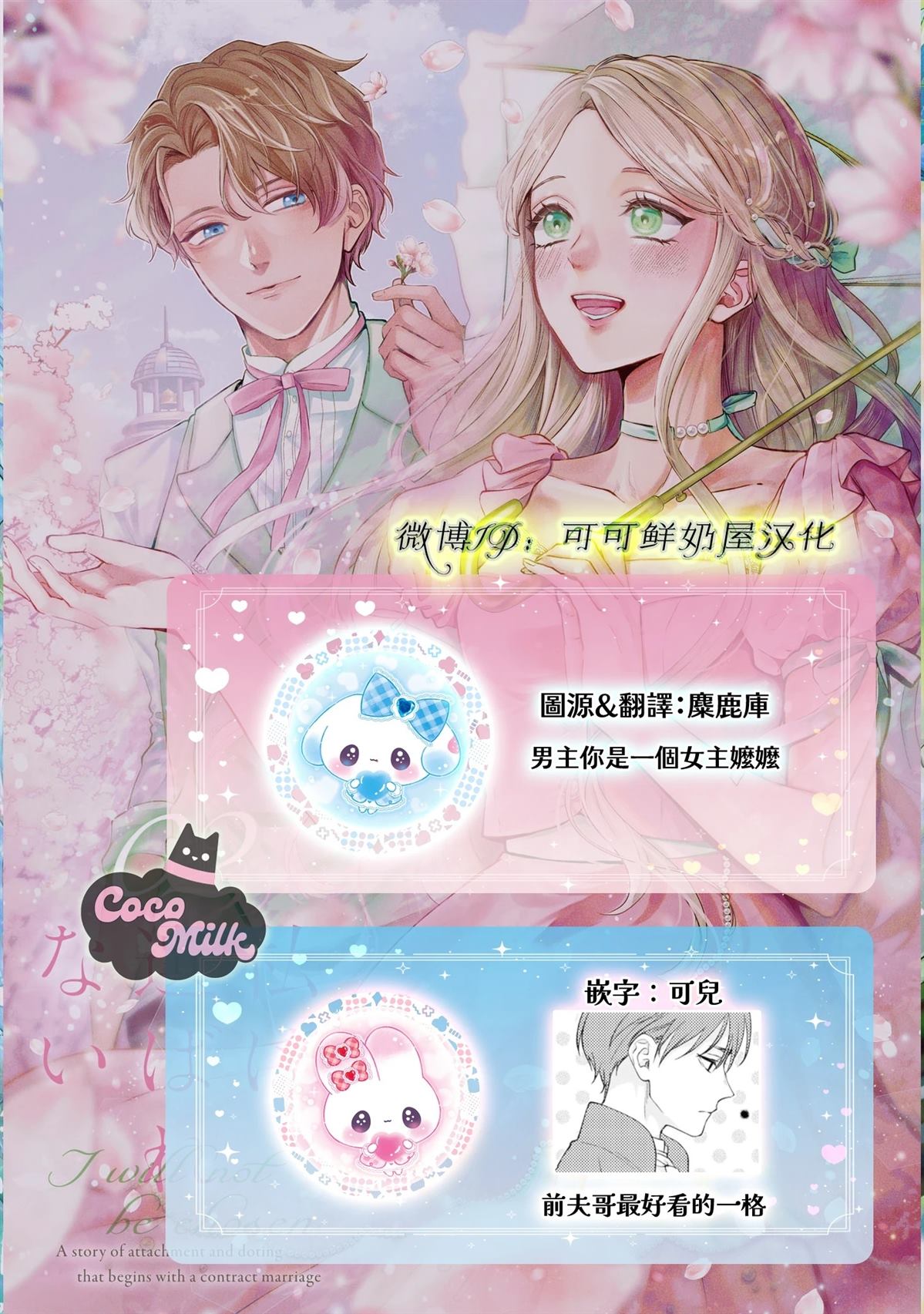 碧贵子 所著小说『私は选ばれない』改编,拥有与『既然终究会遭到抛弃,请允许我最后的放肆』相同的世界观,讲述了处处受挫的伯爵千金 克洛伊 与不懂爱的少公爵 列奥尼尔 以契约婚姻为起始的爱情故事。 【可可鲜奶屋译制,禁止任何形式的转载及二次上传。】