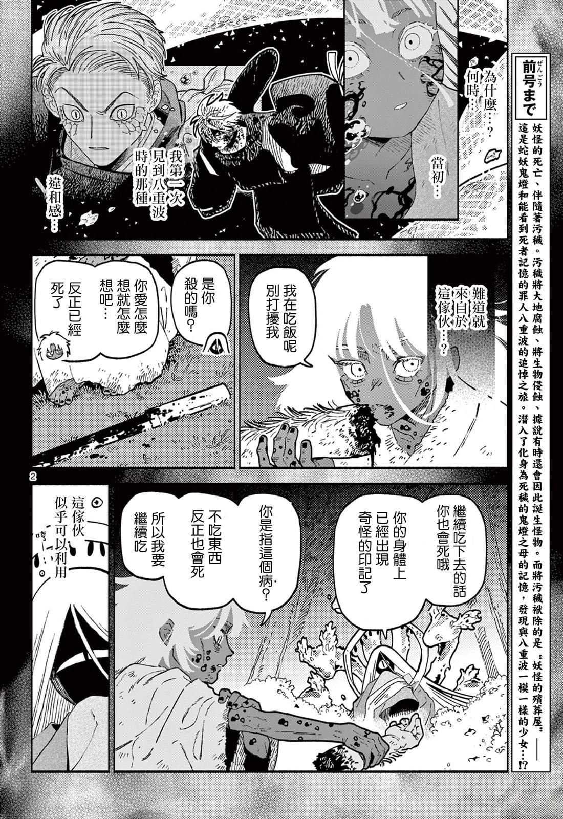 污秽伴随著妖怪的死亡而产生,那是侵蚀大地,孕育怪物的不净存在。为了净化污秽,蛇的妖怪·鬼灯与能重现死者记忆的人类·八重波踏上旅途。人与妖怪、生者与死者。将本不会交错的两人联系在一起的“异怪的殡葬屋”的故事。