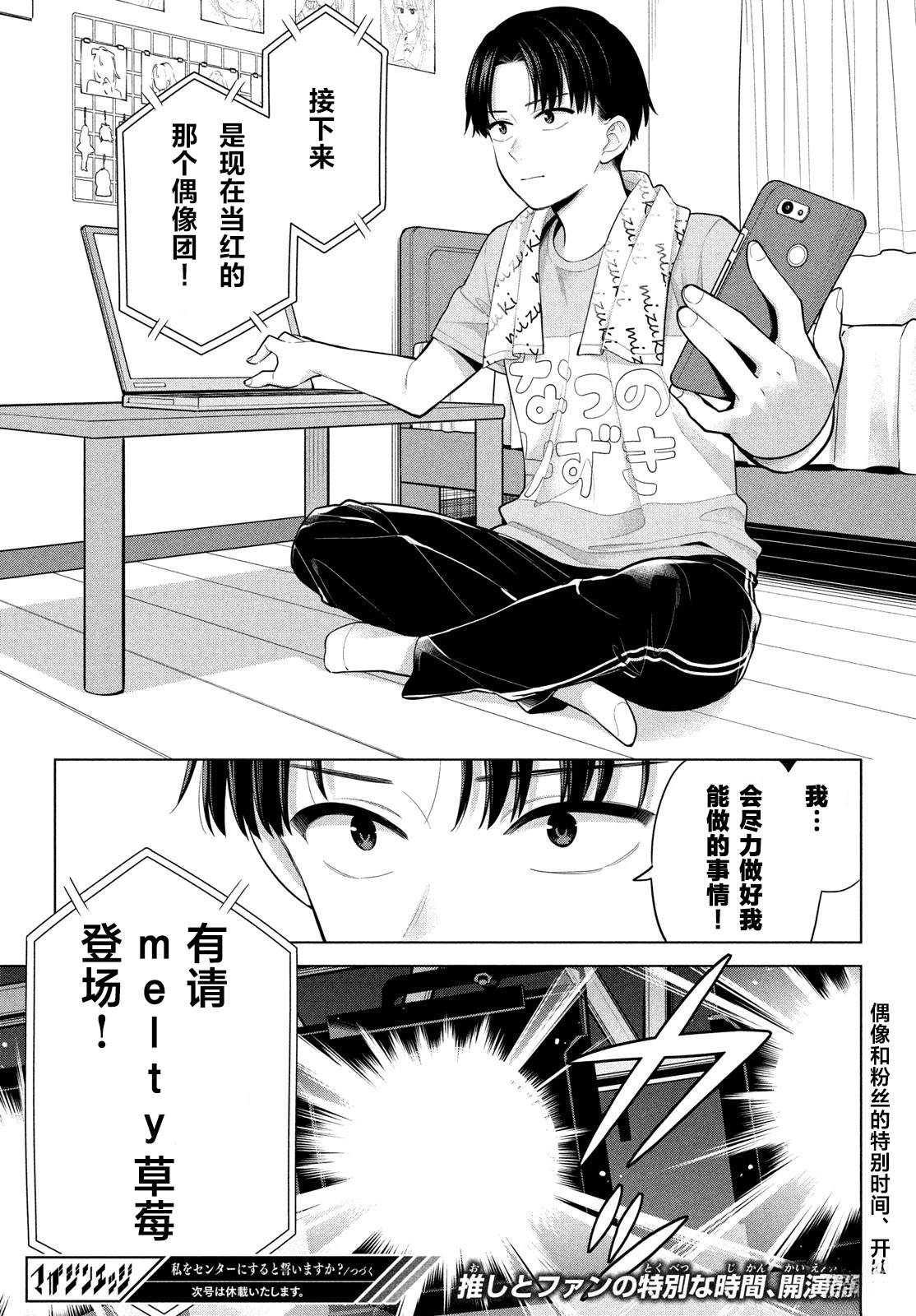 「如果你真的能让我成为中心的话——……那我就和你结婚」。 国民级偶像团体·《melty草莓》,人气最低的夏野瑞希。就是这样一位偶像的唯一单推人·奥田幸一。本该毫无交集的二人因为一些意外住在了一间屋檐下。且成为了要帮助瑞希从最下位变成C位的战友!? 认真起来的偶像×单推的协助能否帮助瑞希登上star的[]的宝座。 一场名为「日本梦」的故事即将幕[-折叠]
