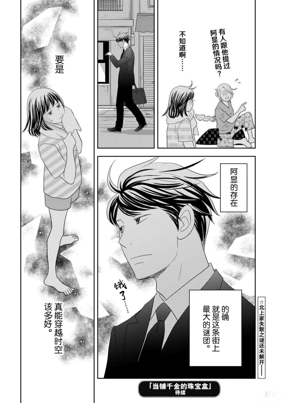 当铺 志野部的宝石匣漫画 ,在一个寒冷的冬夜,志野部当铺进来一对祖孙。 因为北上一族分崩离析,北上章子欲将其孙子北上显定抵押。 志野部当家却提出若三年内不来赎回,就要将其与自家孙女定婚。 于是,北上显定与志野部当铺的故事就此…… 二之宫知子自从《交响》之后终于再次执笔正统BG故事~ ([](所以另一部《超频》那个到底是……) 不过貌似老湿坑略多还带两个娃, 这部颇为有趣的作品下期是明年2月出刊(疑似三个月一连载的坑啊![-折叠]
