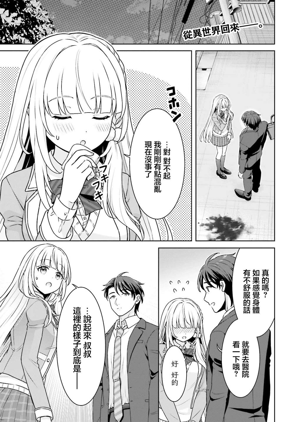 平凡上班族松永,某天为了保护住在附近的女高中生伊势崎圣奈,挺身而出却惨遭暴徒刺成重伤。 就在松永气息奄奄、命悬一线之际,圣奈身上竟突然发出不可思议的光芒!凭借这股谜样力量,他从鬼门关前奇迹生还—— 再次睁眼,两人竟已来到了异世界!? 三十岁的社畜大叔 × 喜欢大叔的JK少女 , 一场横跨地球与异世界[]界,超的欢乐冒险剧[-折叠]