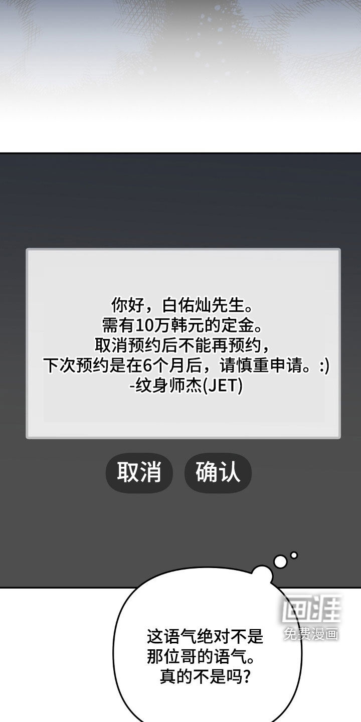 冲动之下跑去纹身的裕瓒,因缘际会认识了冷漠却技艺高超的纹身师俊杰。 虽然裕瓒有钱、有时间、也有热情,但不知为何,想找俊杰纹身却难得要命。 “我先走啦。我会偶尔给你发私信的,别已读不回,要好好回复。而且也要给我的动态点个赞。” “这个我再考虑一下。” 尽管纹身店的规定是未成年人绝对不行,但裕瓒却一边开玩笑一边问能不能破例给他纹身。 “别再考虑了,直接回复我吧。而且以后一定要给我纹哦。等假期有空了,我会再来玩的。” “两年后再来,别烦我。” “我会给你发私信